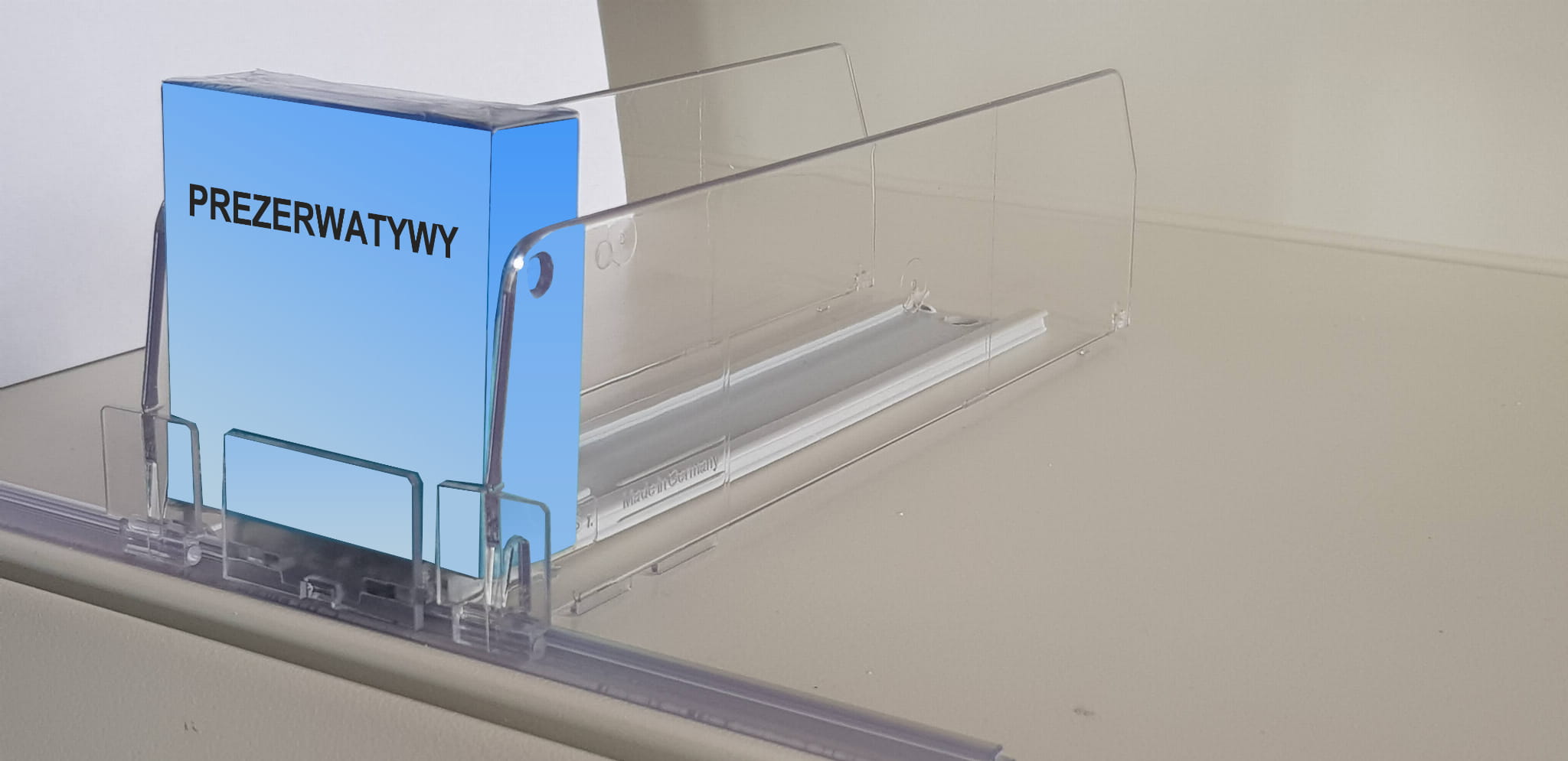 Łącząc popychacze możesz stworzyć ekspozycję dla dowolnej szerokości półki.
