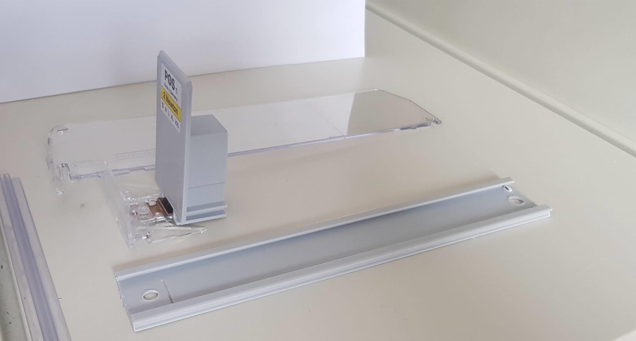 1 Zestaw zawiera: Popychacz o sile 2N, Prowadnicę (szyna po której przesuwa się popychacz), Separator 60x280mm, samoprzylepną listwę montażową "T" -60mm.